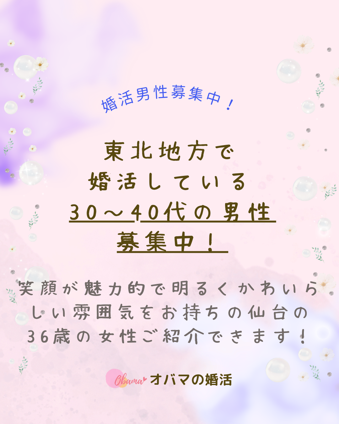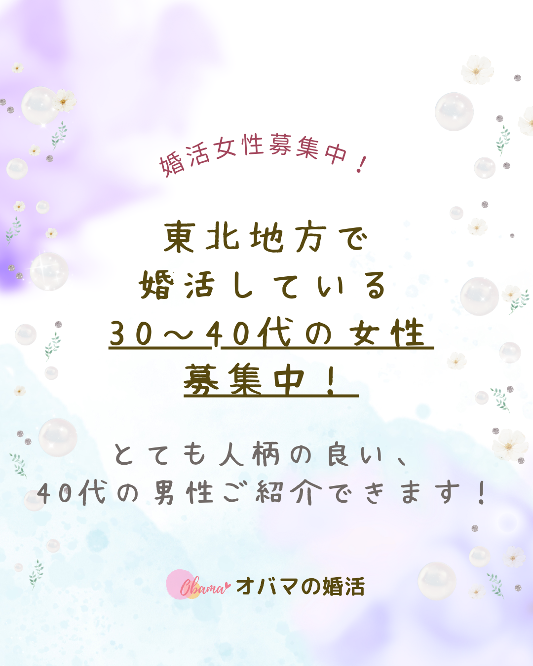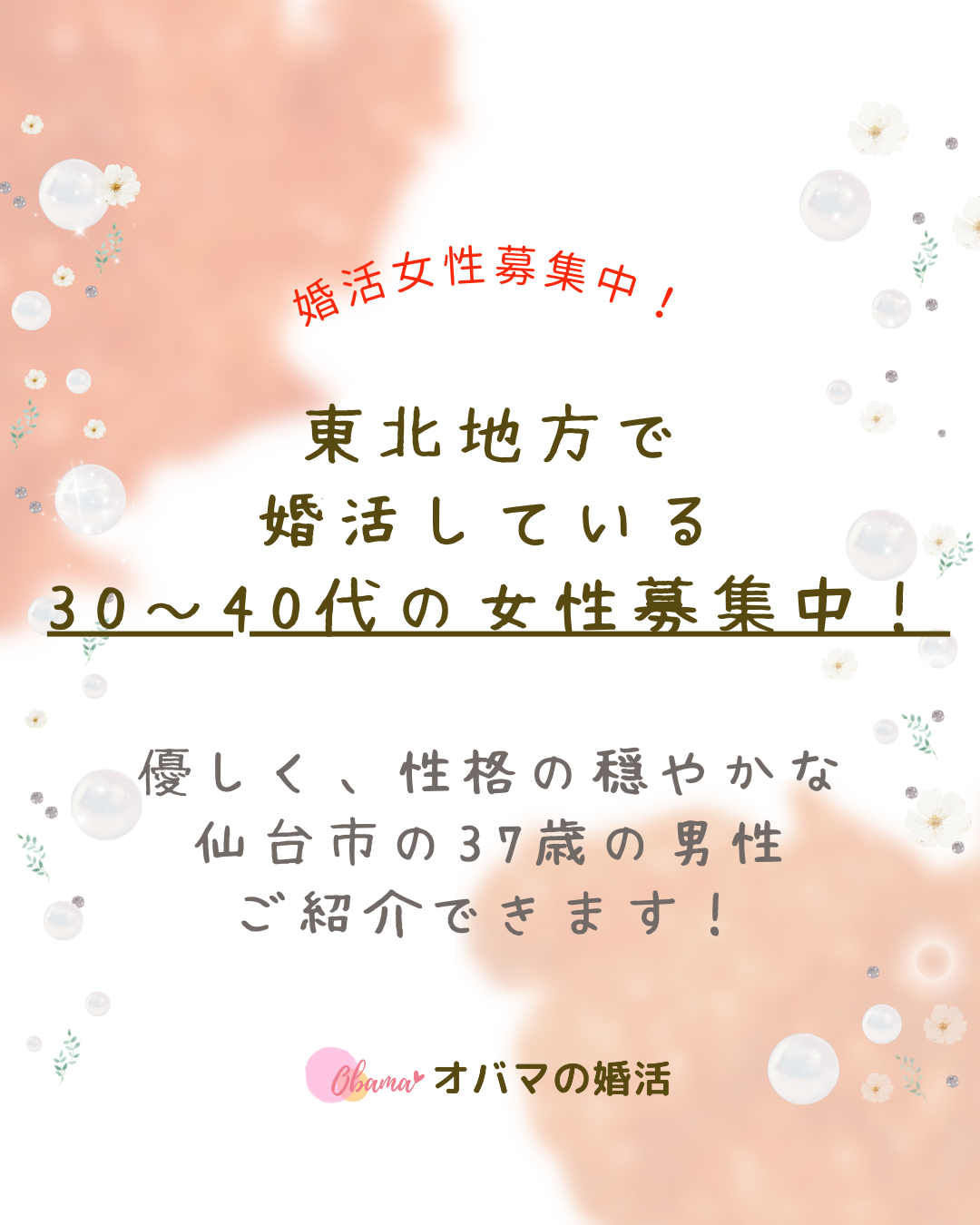 ・お相手に安定を求める方・東北地方にお住まいの方(宮城・福島・山形の方などにおススメ※可能であれば、宮城または福島に定住出来る方)