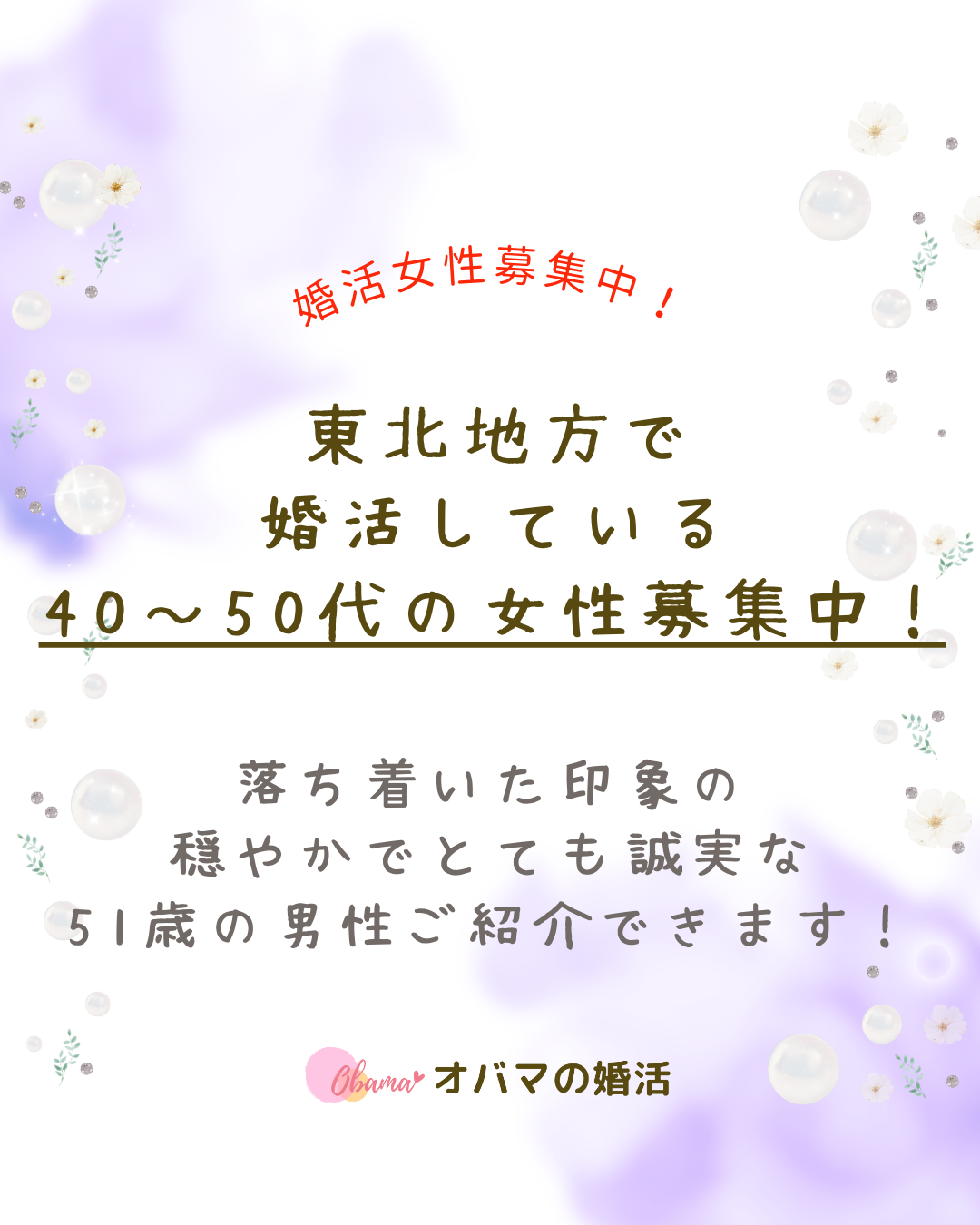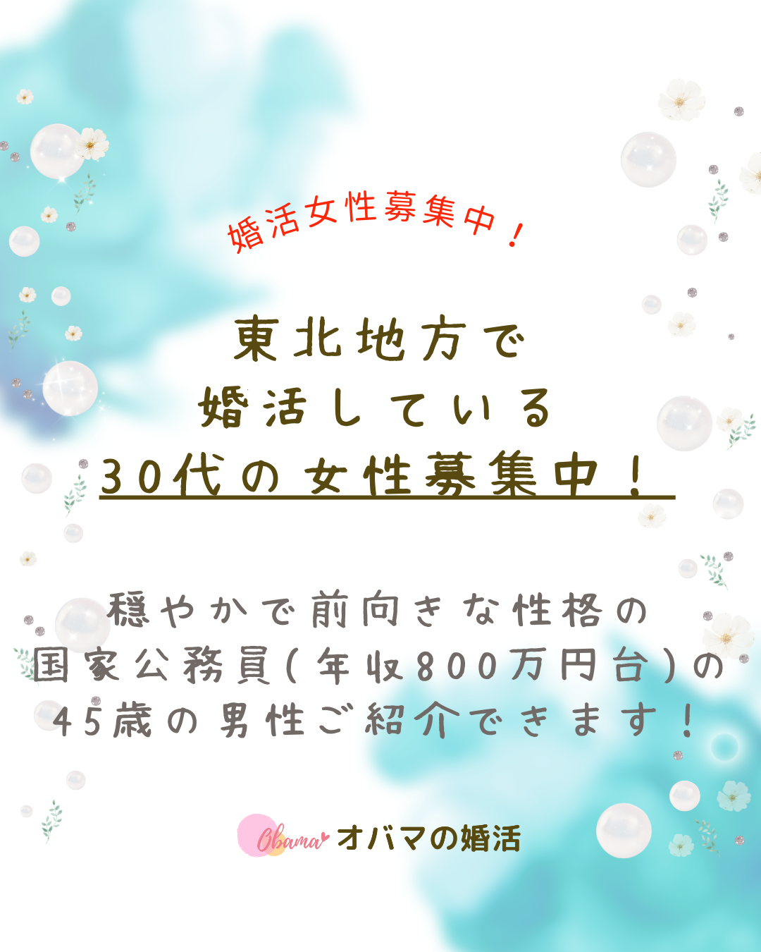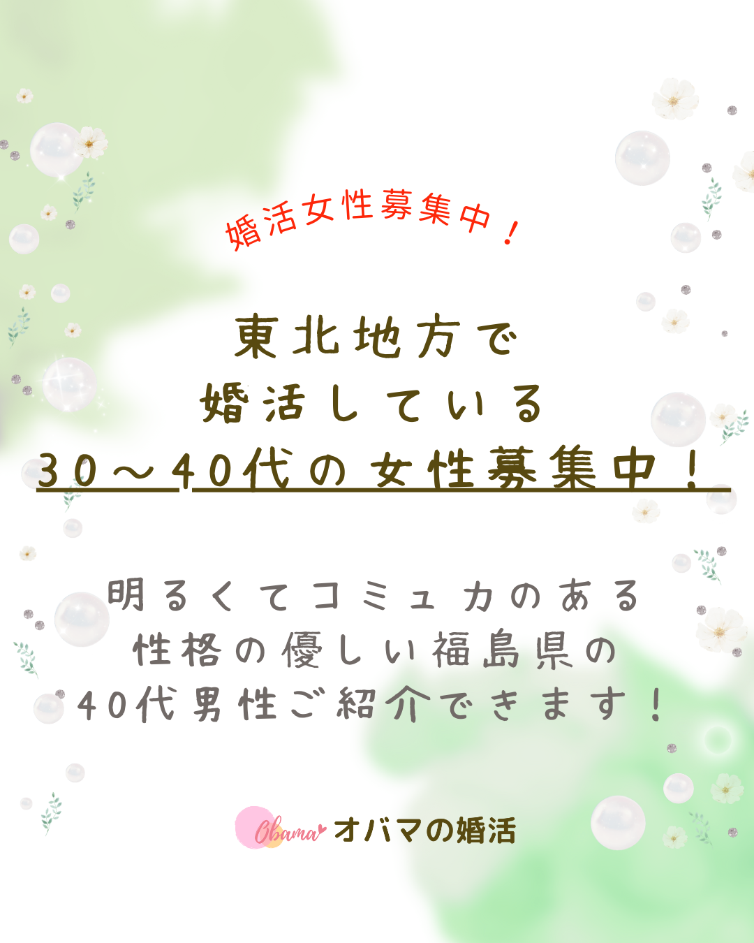 ・お相手に安定を求める方・東北地方にお住まいの方(宮城・福島・山形の方などにおススメ※可能であれば、宮城または福島に定住出来る方)